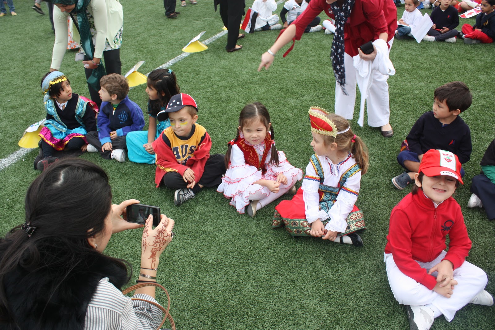 Notice the boy on the left has 3 different flags on his shirt .. these kids are from EVERYWHERE.